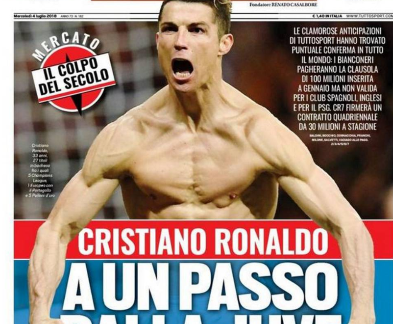 优博7月4日讯 在今天出版的《都灵体育报》头版上,C罗加盟尤文的消息是万众瞩目的焦点,而这…