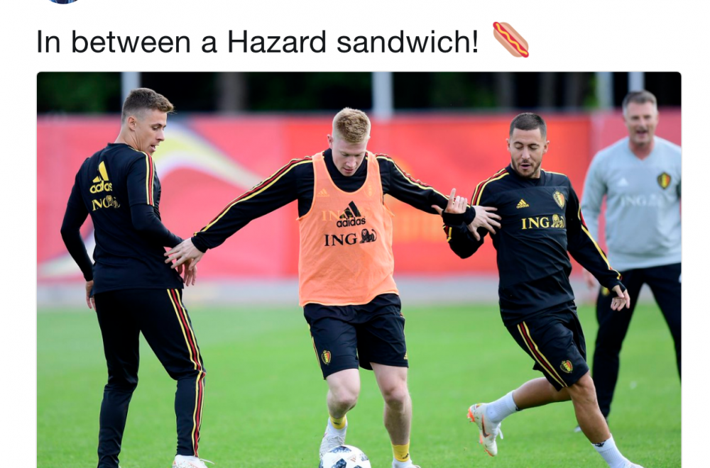 优博6月15日讯 近日,比利时国脚德布劳内发表了一则推特,上面写道:我被夹在“…