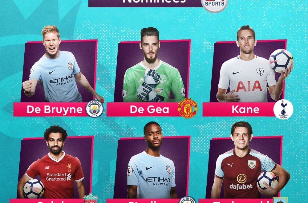 优博5月6日讯 英超官方公布了2017/18赛季最佳球员候选名单,共有6名球员入选,分别是…