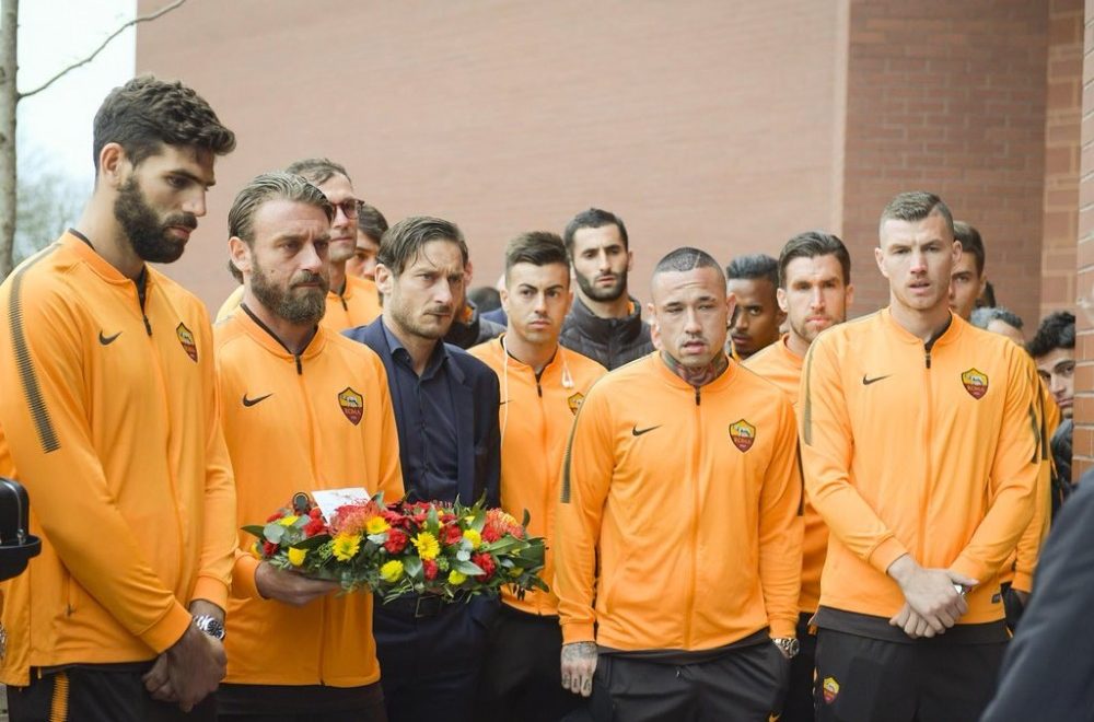 优博4月24日讯 抵达英格兰后,罗马全队来到安菲尔德悼念希斯堡惨案,队长德罗西代表俱乐部为…