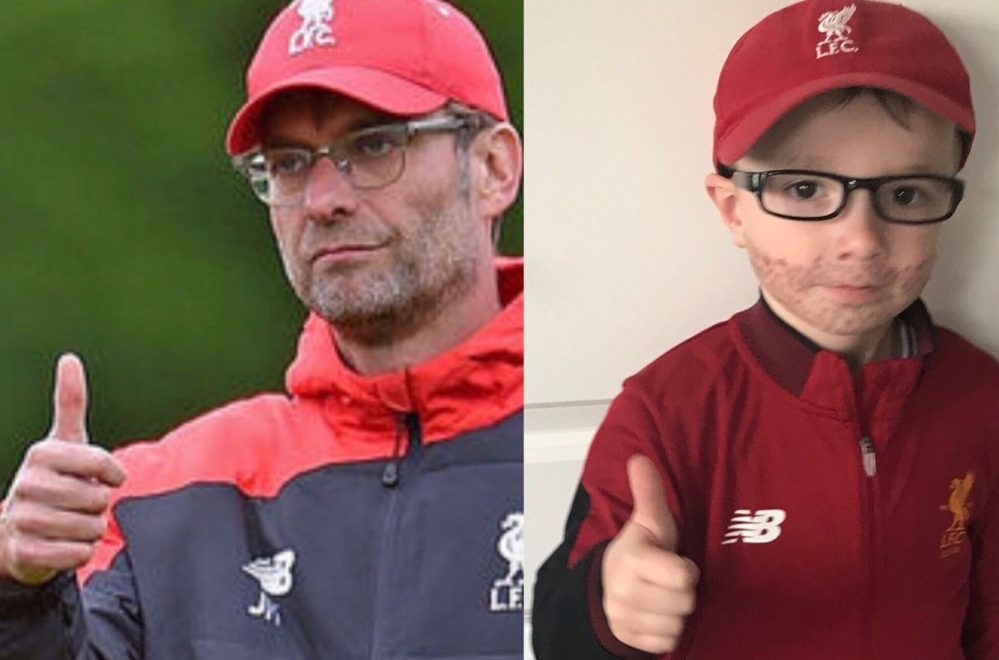 优博3月29日讯 利物浦教练克洛普看见一张红军小球迷模仿自己的照片后被逗得开怀大笑。 这张…