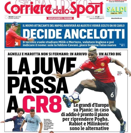 优博7月24日讯 今天出版的《罗马体育报》头版称,由于几大欧洲豪门都有意引进皮亚尼奇,如果…