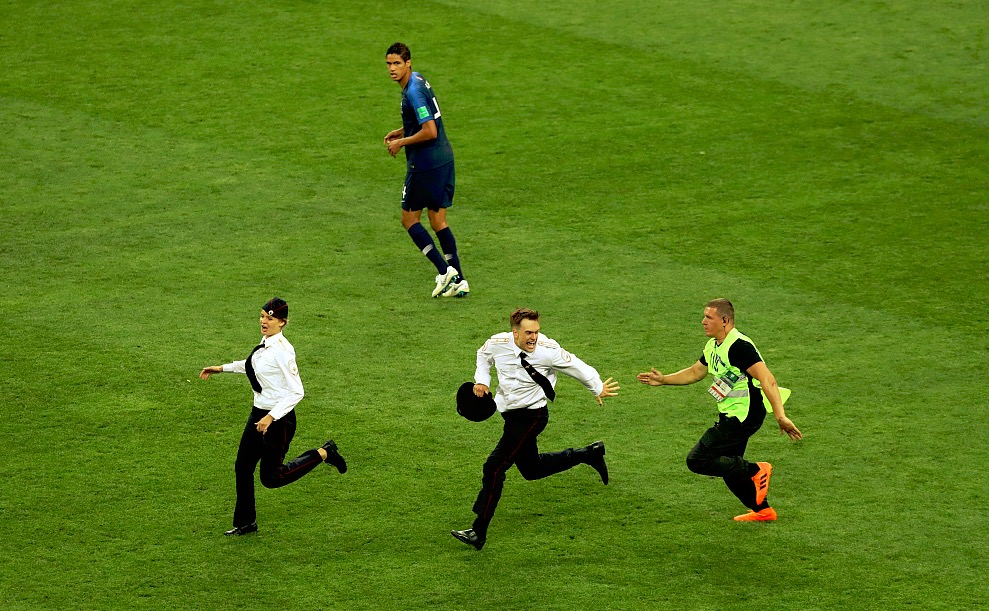优博7月16日讯 法国与克罗地亚世界杯决赛中,4名球迷冲入球场,保安飞奔追逐,比赛一度暂停…