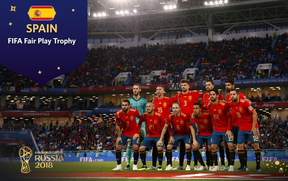 优博7月16日讯 国际足联官方宣布,西班牙国家队荣获本届世界杯的公平竞赛奖。 西班牙国家队…