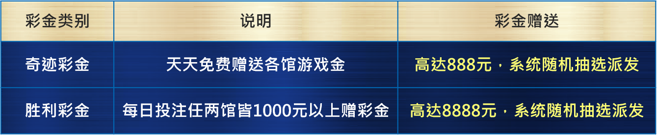 3. 奇迹彩金为系统随机赠送,此彩金需完成的馆别依照领奖时标注的馆别为准