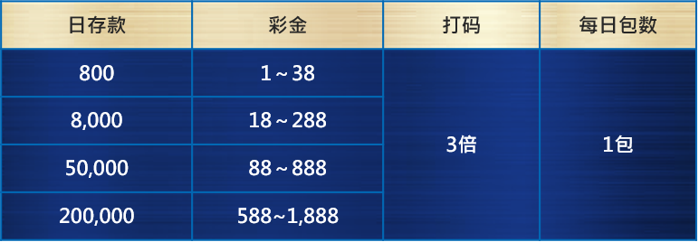 例1:若您当日满足日存款800即去抽选红包,则若日累积存款再达8,000,将无法抽选红包