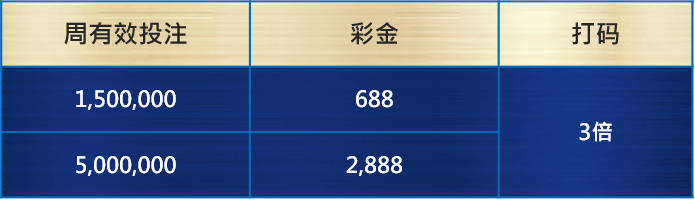 2. 每周可获得一笔最高彩金,活动期间每人最多可领两笔周返银赏
