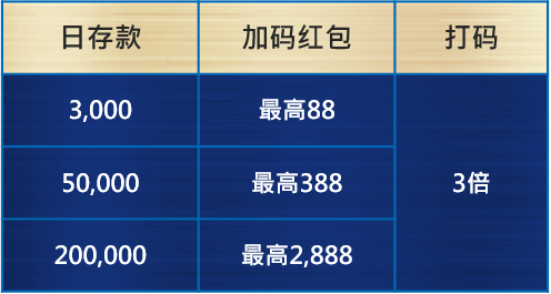 每 日 加 码 红 包 :活动期间每日累积存款3,000以上,即可前往抽红包